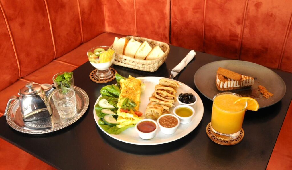 - HOT DRINKS (MOROCCAN TEA-ESPRESSO-VERBENA TEA-ORIGANO TEA – CAPPUCCINO-CAFE LATTE-CAFE CREME)